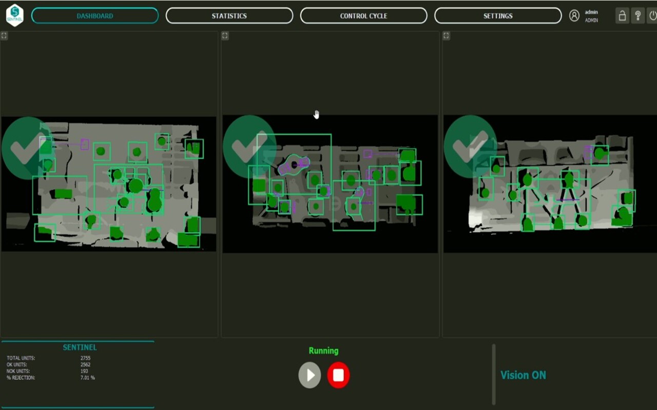 As soluções de inspeção 2D da SENTINEL Vision foram desenvolvidas para uma integração efetuada de maneira simples e rápida em linhas de produção exigentes, adaptando-se a diferentes layouts, ciclos e requisitos de processo.