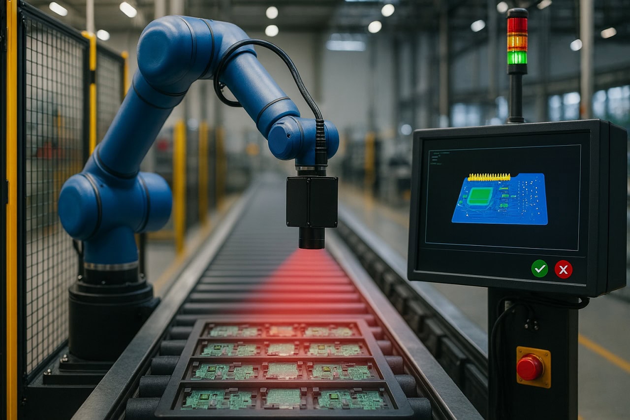 A indústria eletrónica requer um controlo de qualidade extremamente preciso, dada a complexidade e miniaturização dos componentes. A visão artificial proporciona um controlo de qualidade e de processos que assegura a fiabilidade dos produtos, evita falhas funcionais e aumenta a rastreabilidade em processos de montagem altamente exigentes.